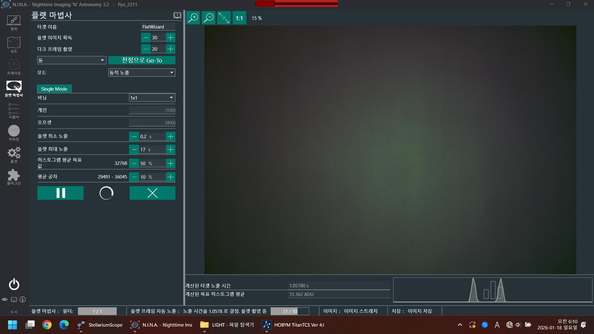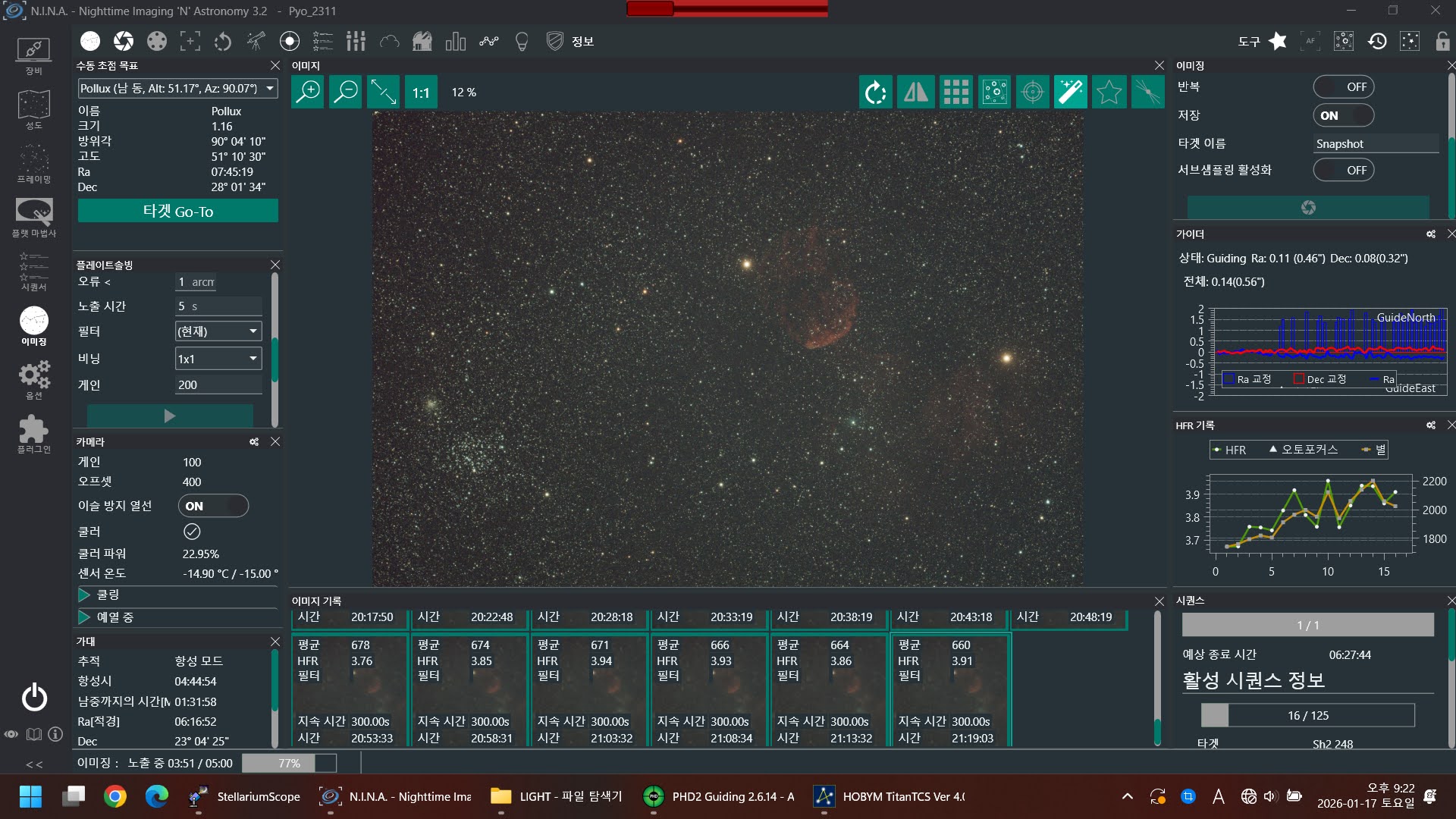 카메라 : Touptek ATR3 CMOS26000 KPA(OSC), 외기온도 : -7도 센서온도 : -15도